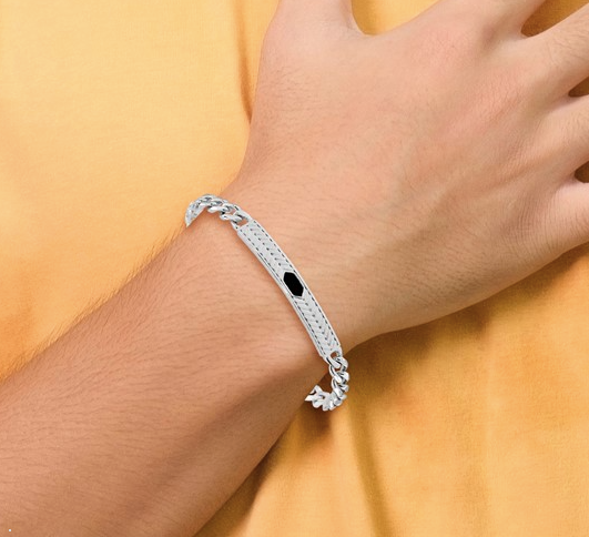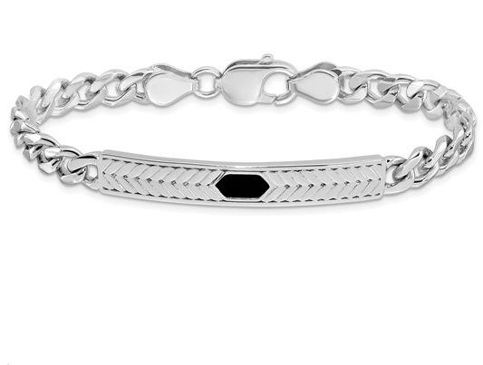 🔹This Sterling Silver Enameled Bar Men bracelet is a perfect gift idea for men. Made with high-quality sterling silver and rhodium plating, for an extra shine effect, it features a sleek and stylish enameled bar design and a secure lobster clasp.
