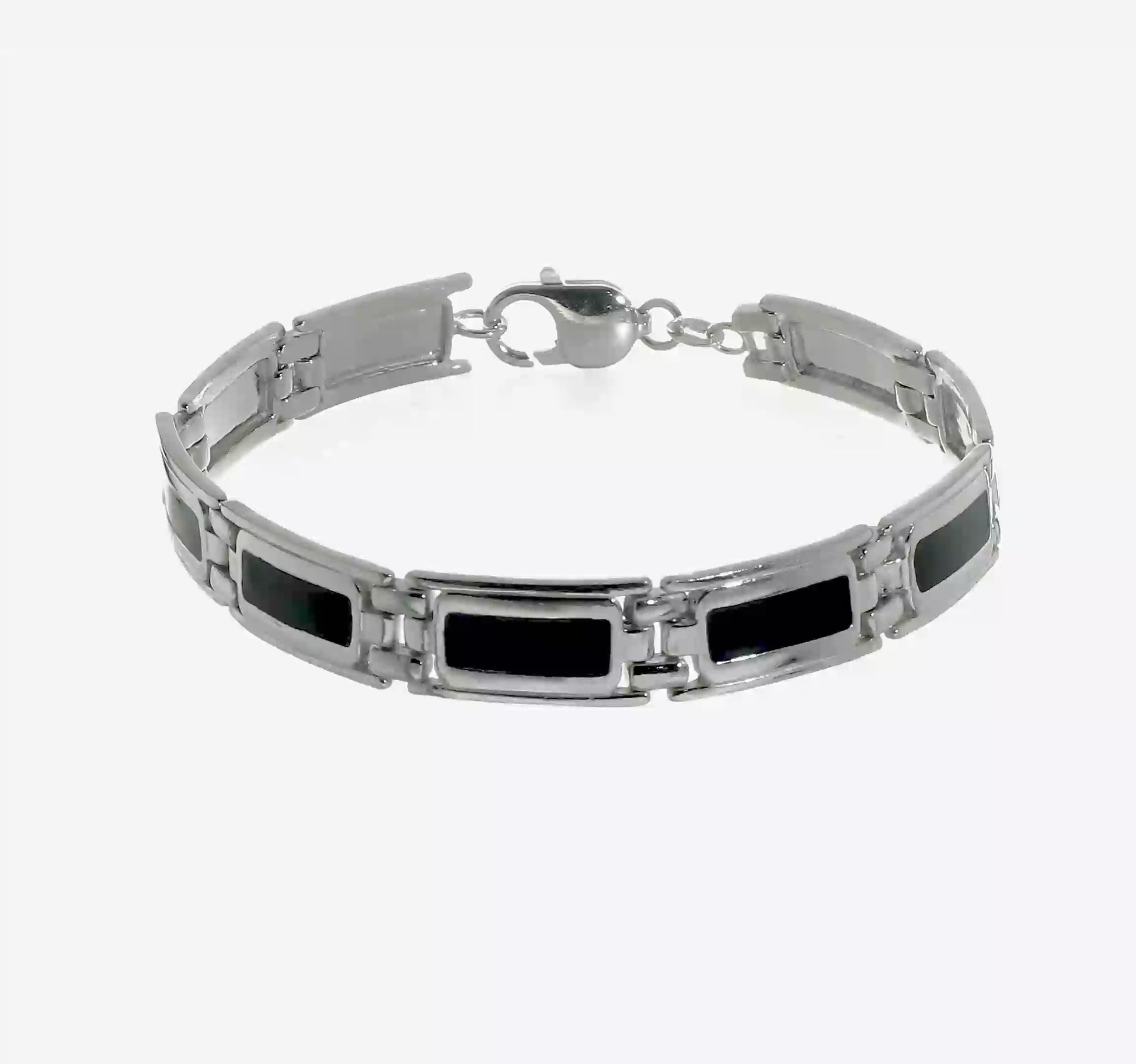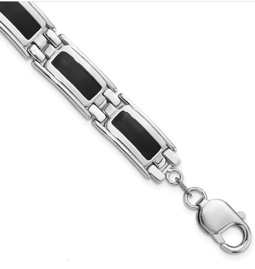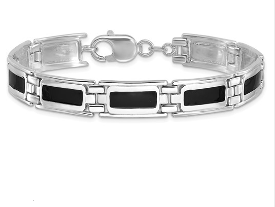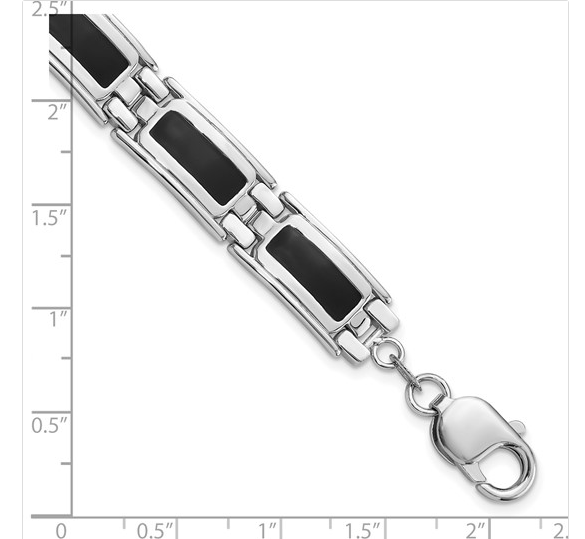 🔹 Keep your style up with our Sterling Silver Men Enamel Link Bracelet. Measuring 8" in length, and crafted with premium sterling silver and rhodium-plated for durability, this bracelet features a sleek black enamel link design that exudes confidence and sophistication. Upgrade your look with this contemporary and refined piece.