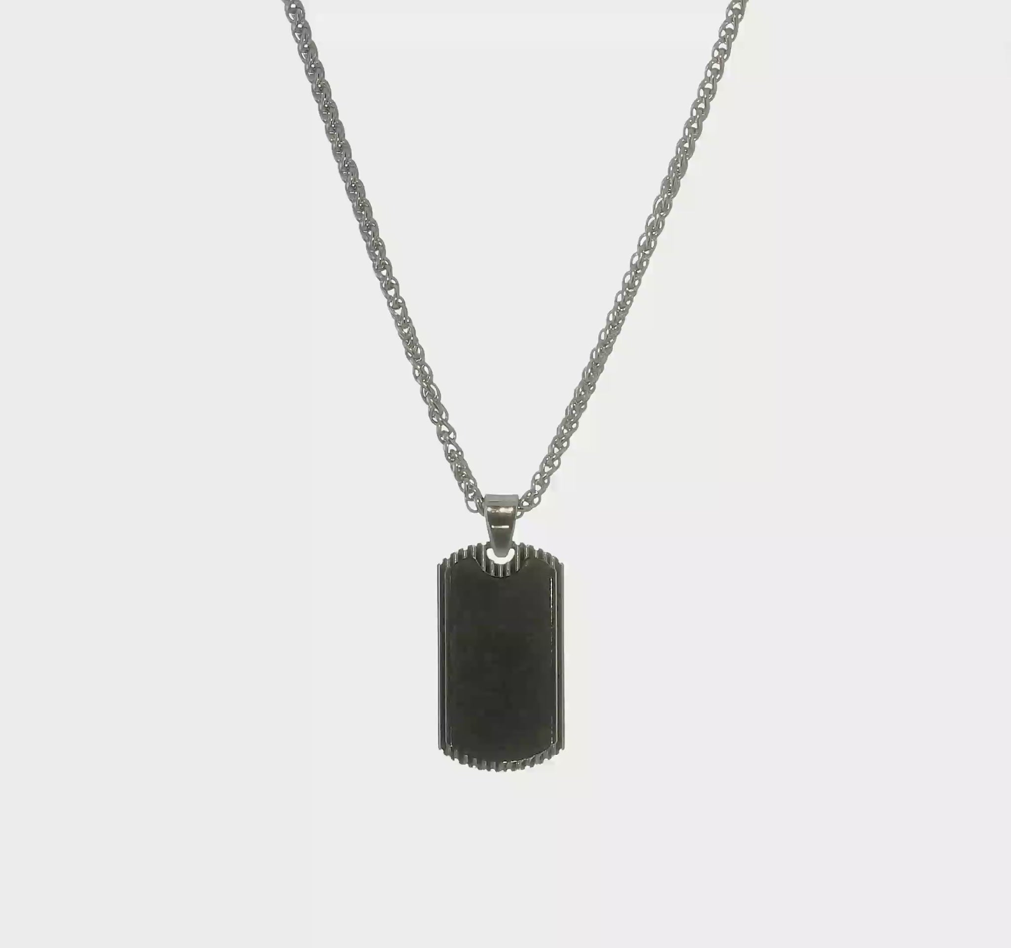 🔹 Sleek meets sophisticated with this men's tag pendant—a stainless steel statement piece featuring a striking black agate inlay that catches the light just right.